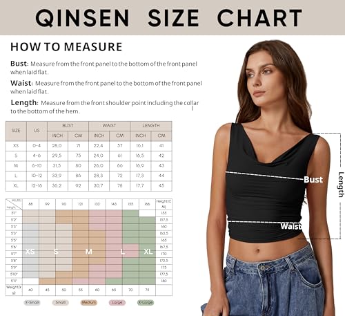 More information about QINSEN Women's Cowl Neck Top Sleeveless Ruched Double Lined Crop Top Y2k T Shirts