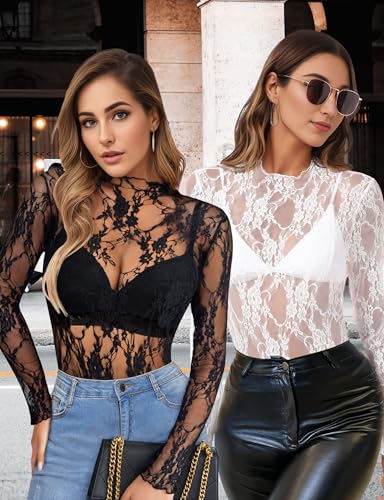 • Occasion : Women see through tops is perfect for casual and daily wear, clubs, parties, nightclubs, homecoming, beaches, pools, outings, birthdays, holidays, dating, shopping, street style, night out, work, concert outfits, clothing gifts, weddings, cocktail parties, gift-giving, weddings,music festivals and more. Mock neck lace floral Y2K long sleeve shirts is the perfect gift for yourself, your loved ones and friends