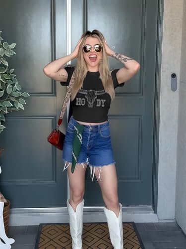 HOT ! Cowgirl Outfits for Women Crop Tops for Teen Girl Y2k Clothes Cowboy Country Concert Graphic Tee Tops