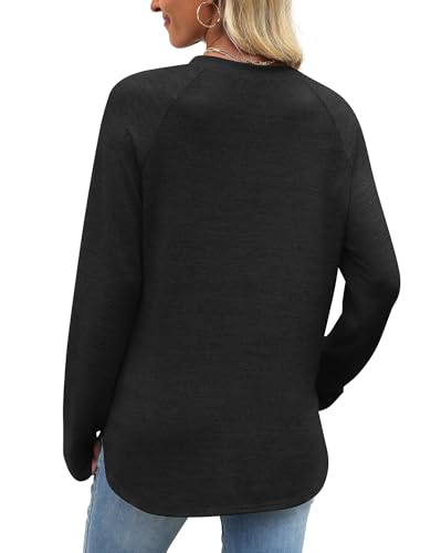 • Features:Long sleeve shirts for women,womens fall fashion 2025,fall fashion clothes,fall outfits for women 2025.Long sleeve design with raglan sleeves for a trendy and relaxed fit. The curved hem adds a feminine flair, and the loose silhouette flatters all body shapes. The top’s length easily covers the hips, providing excellent coverage. Perfect for those seeking both style and comfort.