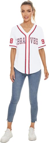 98 Baseball Shirt Women Cow Skull Graphic Fan Tshirt V Neck Country Vintage Jersey Button Down Short Sleeve Tops 5