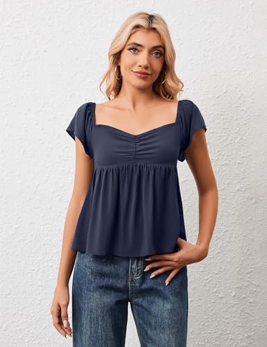 Womens Flowy Peplum Tank Tops Ruffle Sleeve Babydoll Tank Top Sweetheart Neck Smocked Back Short Sleeve Going Out Top 5