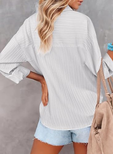 HOTOUCH Womens Button Down Shirt Casual Long Sleeves Loose fit Classic Collared Blouses Fasion Textured Top with Pockets 5