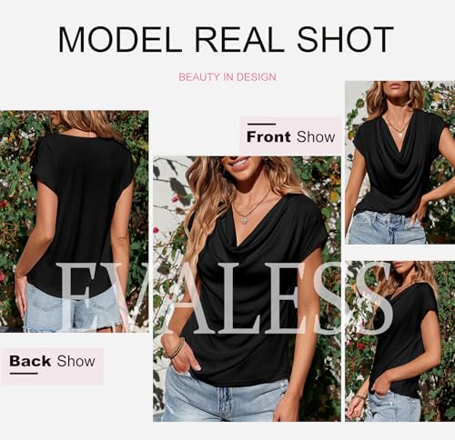 More information about EVALESS Shirts for Women Fashion 2025 Cowl Neck Tops for Women Dressy Casual Short Sleeve Clothes Summer Outfits