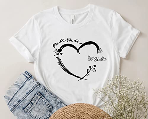 Customizable Mom Shirt with Custom Kid's Name, Personalized Mama Shirt for Women, Gifts for Mommy Shirts, Christmas, Momma Gifts for Valentines Day Multiple Colors 2