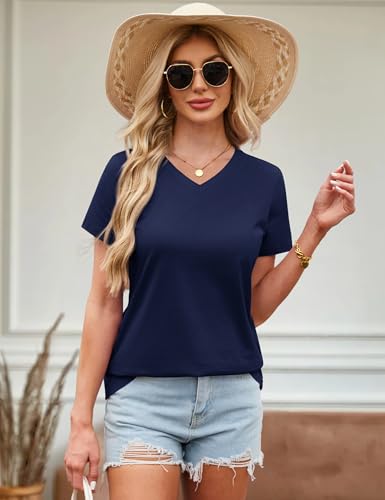 • Sexy V neck: The woman short sleeve t shirts features a classic v-neck design,sexy v neck not only lets your neck look more slender and graceful but also more suitable for matching with accessories further reflecting your fashion charming.