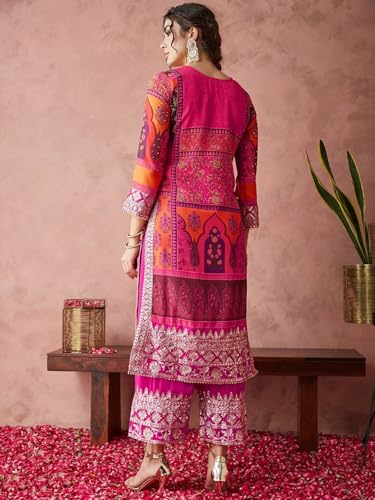 Women's Indian Ethnic Kurta Set with Dupatta Embroidered Georgette Sharara Palazzo Suit 1