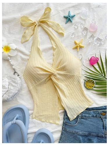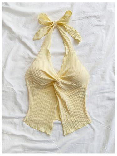 • halter crop tops for women, summer yellow tops for women, tops for women trendy, sexy cropped tank top for women, white halter top