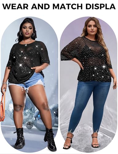 • Unique Design: Plus size tops feature a unique design with half sleeves, a round neckline, and dropped shoulders. The sheer and sparkly fabric adds a touch of glamour, while the relaxed fit ensures casual comfort. These concert outfits tops are perfect for those looking for a sexy and stylish addition to their wardrobe.