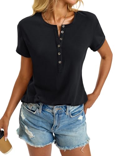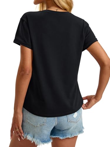 • Flattering Design & Fit: This women' s short sleeve t shirts features a sexy deep v low cut and a henley neckline design, it is classic and trendy. rolled sleeves give this womens tees a casual look, Its curved hemline provides versatile styling options, whether tucked in or left loose.