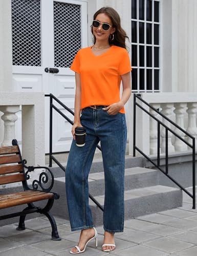 HOT ! YUCOLEN Womens V Neck T Shirts Short Sleeve Cotton Summer Tops Casual Basic Tee Shirt 2025 Trendy Fashion Clothes