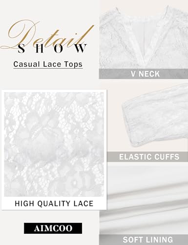 HOT ! AIMCOO Lace Tops for Women 3/4 Sleeve Dressy Casual Blouses 2025 Boho Floral Top Office Work Shirts
