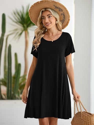 BELAROI Womens Summer Casual T Shirt Dress Loose Swing Tunic Dress Short Sleeve Sundress with Pockets 1