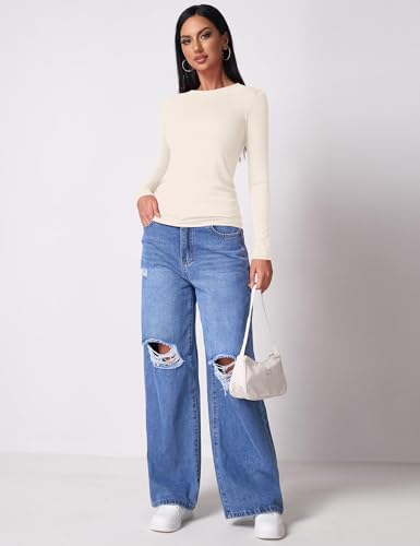 Beluring Women Long Sleeve Shirt Crew Neck Tops Slim Fit Tshirts Basic Ribbed Tee 4