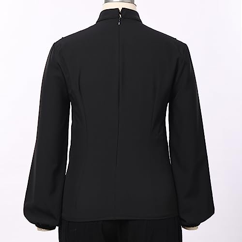 Womens Church Clergy Shirt Tab Collar Elastic Cuff Long Sleeve Lotus Ruffled Blouse Top 7