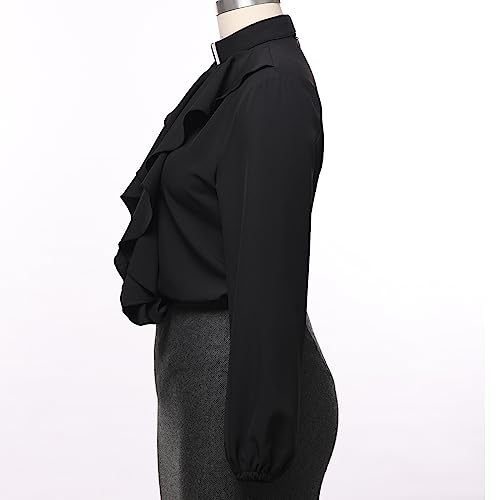 More information about Womens Church Clergy Shirt Tab Collar Elastic Cuff Long Sleeve Lotus Ruffled Blouse Top