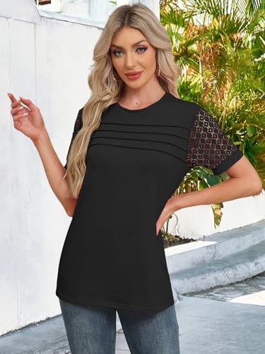 2PCS Womens Tops Summer Loose Casual Crewneck Lace Sleeve T Shirts Fashion Beach Vacation Clothes Cute Blouse 2025 3
