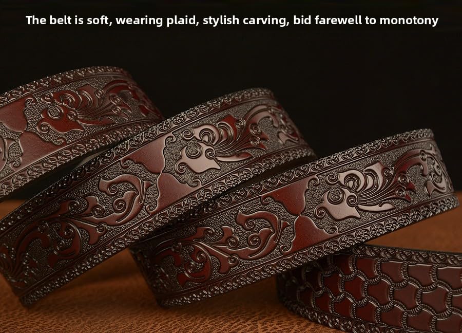Men's Eagle Buckle Leather Belt - Genuine Cowhide Automatic Clasp Belt for Jeans & Casual Wear (Black/Brown, 4 Color Options) 2