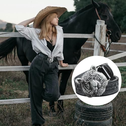 • Attractive Engraved Leather Belts - Western buckle leather belt for men women has a beautiful and unique embossed pattern, exuding a strong western culture. The belt buckle with vintage engraved design, gives it a real wild-west feel.