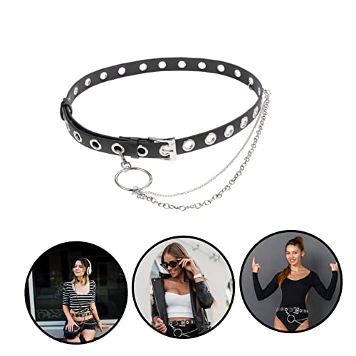 FRCOLOR Grommet Leather Belt with Chain for Men and Women Punk Aesthetic Waist Belt for Vintage Jeans Durable PU Leather Accessory for Casual Wear and Halloween Parties 7
