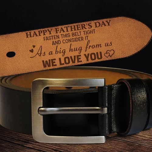 HOT ! Fasten This Belt Tight And Consider It As A Big Hug From Us - Personalized Engraved Leather Belt, I Love You Engraved Custom Leather Belt with Name, Unique Happy Father's Day Gift for Husband Dad Him