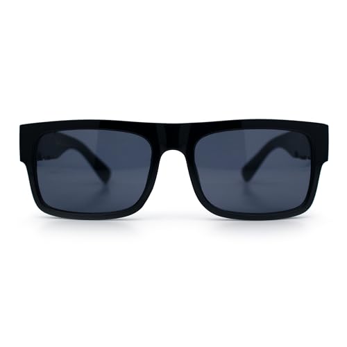 Locs Mens Bold Gothic Logo Thick Arm Horn Rim Gangster All Black Sunglasses 1