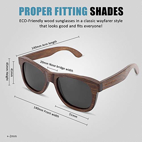 • REAL WOOD SUNGLASSES: Made from 100% original bamboo wood, each pair has a unique grain, and it is 100% handmade.