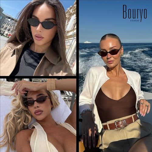 HOT ! Bouryo Retro Oval Sunglasses for Women - Small Y2k Sunglasses Chic Cat Eye 90s Sunnies - Lightweight Narrow Trendy Shades