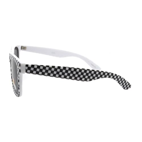 Pop Fashionwear Classic Rectangular Sunglasses Polarized Lens Black Frame White Checker T712 1