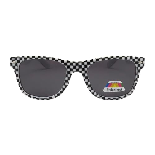 HOT ! Pop Fashionwear Classic Rectangular Sunglasses Polarized Lens Black Frame White Checker T712