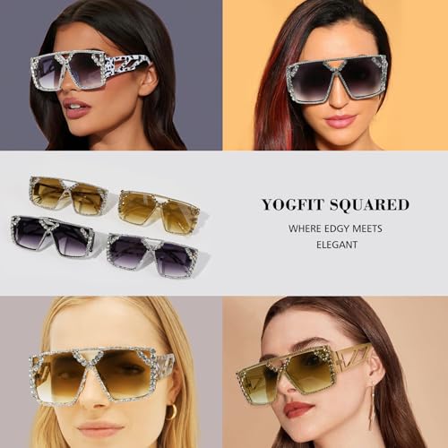 YOGFIT Oversized Square Diamond Sunglasses for Women Fashion Sparkling Crystal Retro Disco Sunglasses 1