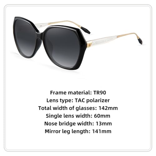 More information about Trendy Oversized Polarized Sunglasses for Women Large Black Driving Sun Glasses Crastal Elements Designer Shades