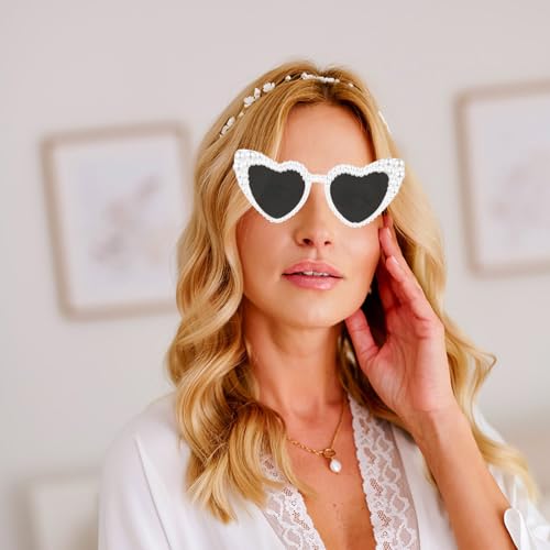 • White Heart Sunglasses: Bremorou's white heart sunglasses are the perfect accessory for any bride. These sunglasses feature a unique heart-shaped design adorned with luxurious pearls, making them an ideal choice for weddings, bachelorette parties, and bridal showers. The elegant design ensures that you stand out as the center of attention, capturing unforgettable moments with style.