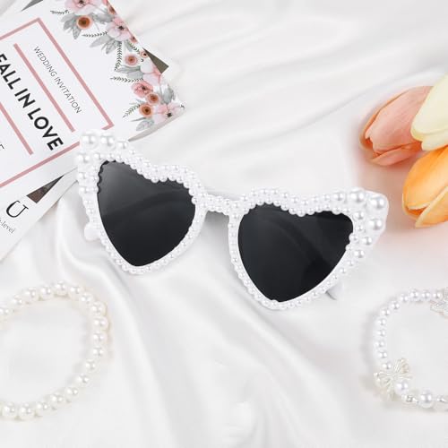 White Heart Sunglasses Pearl Sunglasses For Women Love Heart Shaped Sunglasses For Bride Wedding Love Pearl Sunglasse Vintage Cat Eye Mod Style Retro Glasses 6