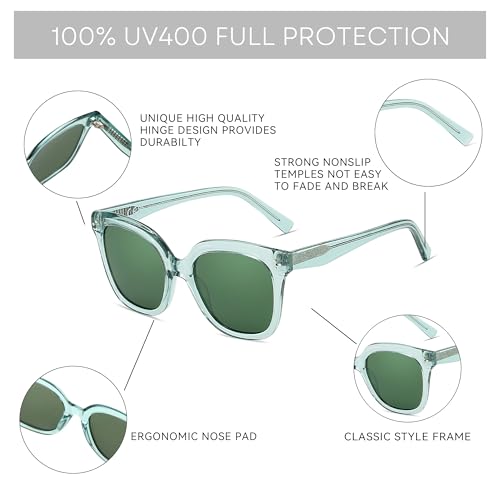 • [Polarized & UV400 Protection] Designed with UV400 lenses, our classic polarized sunglasses for women block 100% of harmful UVA and UVB rays, protecting your eyes from long-term damage while you enjoy the sun, while enhancing clarity and reducing glare, perfect for those who seek both fashion and functionality.