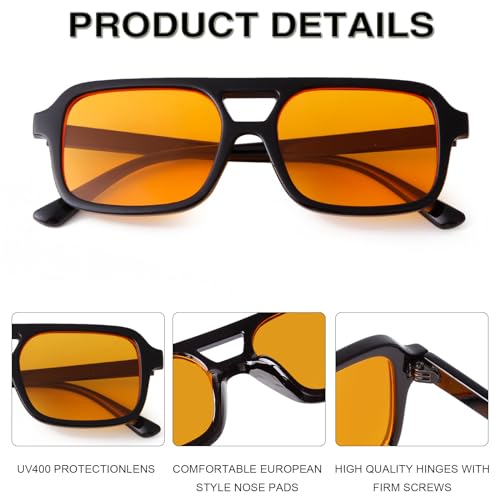 • HIGH QUALITY►The square aviator sunglasses are made of high-quality plastic frames, durable lightweight materials and reinforced metal hinges. It is smooth,comfortable and durable.Suitable for both men and women, unisex retro sun shades