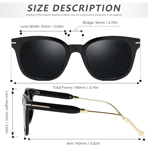 • PRODUCT DIMENSION – Lens Width: 51mm(2.00 inches) | Lens Height: 51mm(2.00inches) | Temple Length: 143mm(5.62 inches) | Nose Bridge: 18mm(0.70inches).