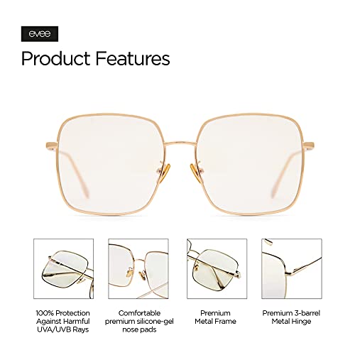 More information about EVEE Square Oversized Anti-Blue Light Glasses For Women with Flat Lenses and Metal Frame - (Kelly)