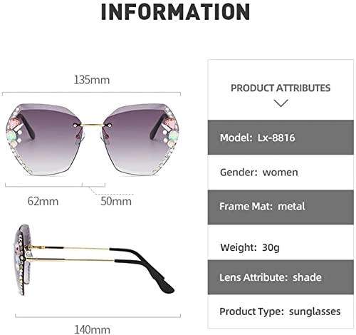 • [Women Rimless Sunglasses]: ---Trendy rimless design with cut edges on the lenses. The unique diamond-encrusted design is stunning, Show Your Unique And High-end Taste.