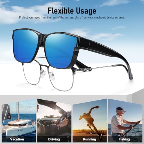 Wzerry Polarized Fit Over Glasses Sunglasses, Wear Over Sunglasses Wrap Around Shades for Men Women UV400 Pretection 6