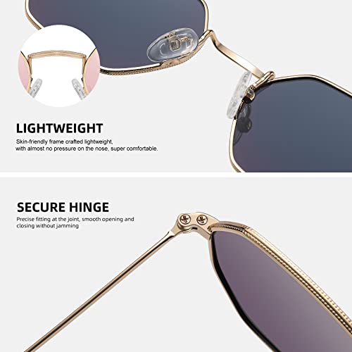 Small Octagonal Polarized Sunglasses for Women Men Classic Retro Trendy Metal Frame Polygon Sun Glasses FZN3556 3