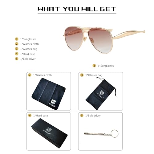 HYLLE Oversized Retro Gold Aviator Sunglasses Women Metal Trendy 70s Sun Glasses Shades Fashion Eyewear Champagne 5