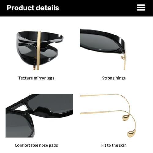 • FASHION DESIGN:These modern frame paired with the exquisite temples sunglasses are very chic with a little high quality and fashion style. The frame adds retro and classic style. They can go with any outfit and make up they are the perfect choice for daily wear or used as high fashion accessories.