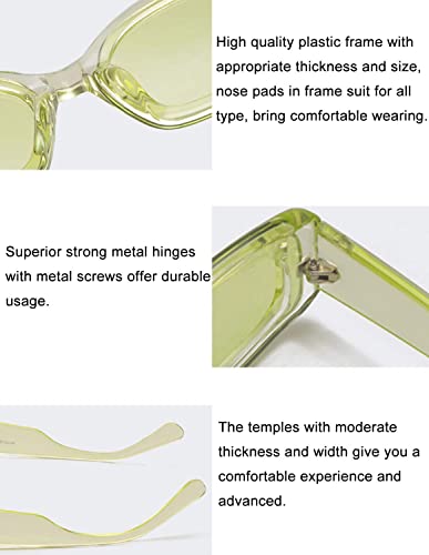 • Trendy Rectangle Sunglasses for Women/Men – Clear frame with fashion candy color lens, they are cute and creative. Multiple colors easily match well t-shirt, dress, outfits and perfect for more occasions.