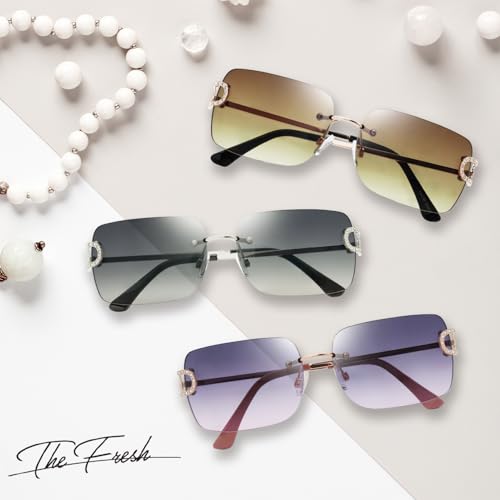 The Fresh Minimalist Rimless Frameless Rectangle Sunglasses Y2K Rhinestones Shades 5
