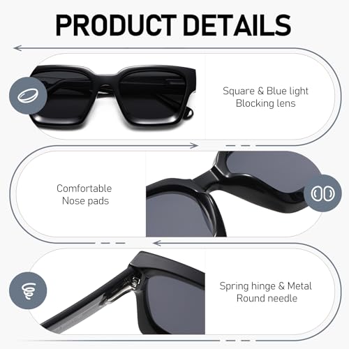 • STYLISH THICK SQUARE SUNGLASSES:Durable, chunky unisex design with beveled edges combines retro charm with modern fashion, making these sunglasses perfect for driving, traveling, shopping, or any outdoor activity.