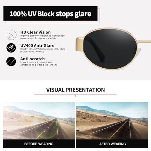 • PERFECT SIZE: These oval sunglasses for women and for men are 5.55inches wide, 1.65 inches tall, and have a nose bridge measuring 0.75 inch. They’re made to fit any face shape. Plus, the retro oval sunglasses for women men come with easy returns if they don’t fit perfectly!