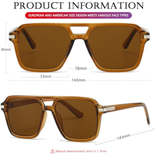 • Square Aviator Frame: Classic aviator sunglasses are keeping up closely with the latest retro fashion trend, double bridge design, give these sunglasses stylish and retro style shades, and reinforced metal hinge, integral nose pads, and super comfortable temple, makes you more comfortable when wear