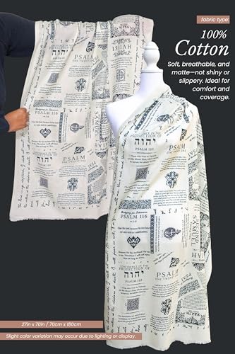 HOT ! 100% Cotton Christian Prayer Shawl with Protection Bible Verses - 28x70" Large, Lightweight Scarf, Christian Gift for Women