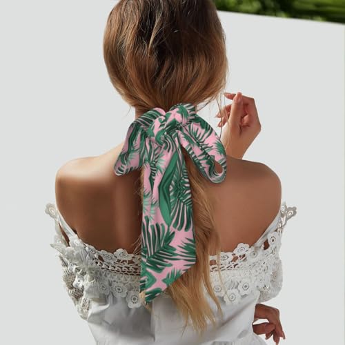 green palm tree leaves pink Picture Women's Fashion Scarf - Head Hair Accessories Versatile Scarf for Women Valentine's Day and Mother's Day, Black, One Size 1